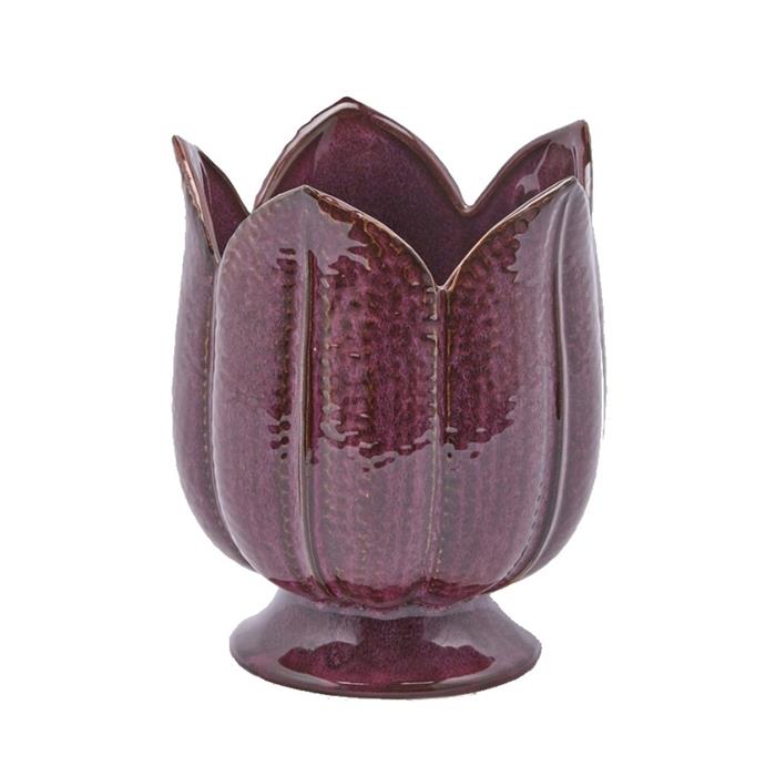 Keramický obal na květináč ve tvaru květu tulipánu, který vkusně doplní váš domov.