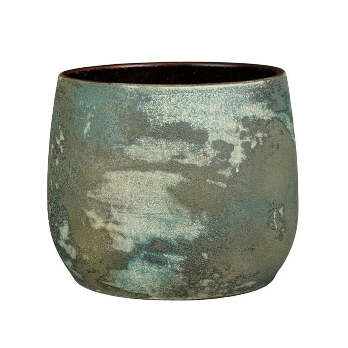 Obal na květináč kulatý terakotový OLAF zelená patina 25,5cm