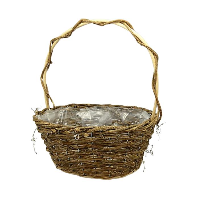 Koš oválný proutěný s 1 uchem a igelitem hnědý 28x22x48cm