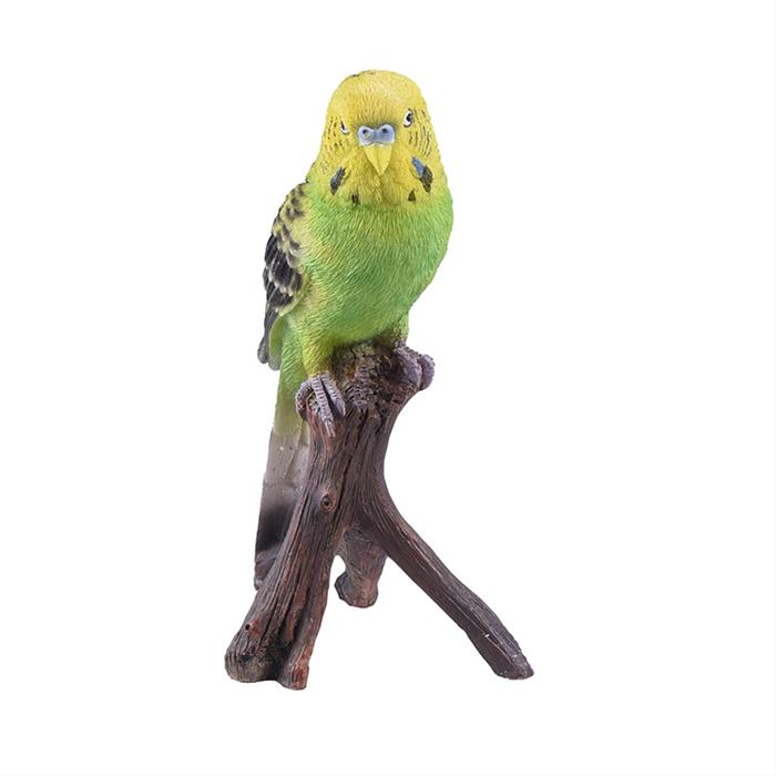 Papoušek/andulka na větvi polyresinová žluto-zelená 16cm