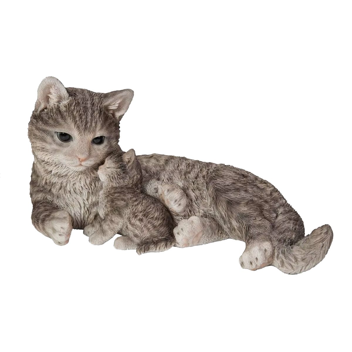 Kočka s mládětem ležící polyresinová šedá 35cm