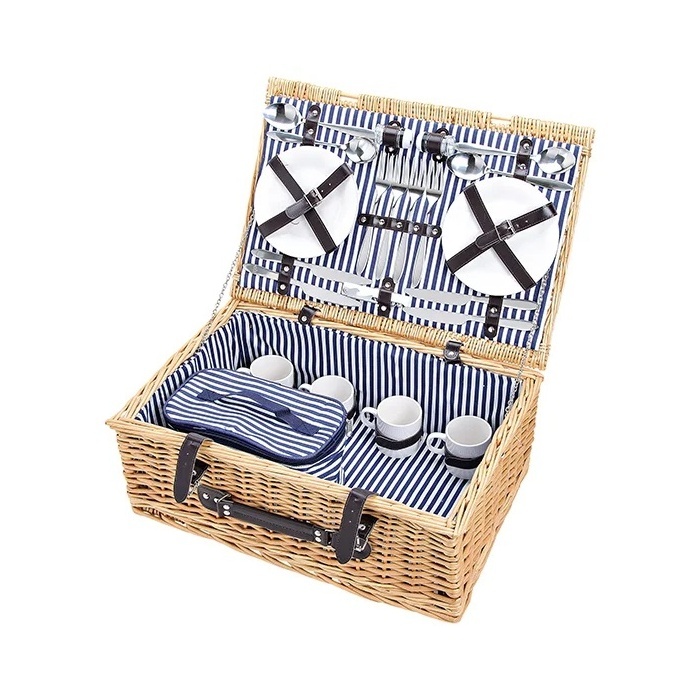 Koš proutěný na piknik pro 4 osoby přírodní 54x37x21cm