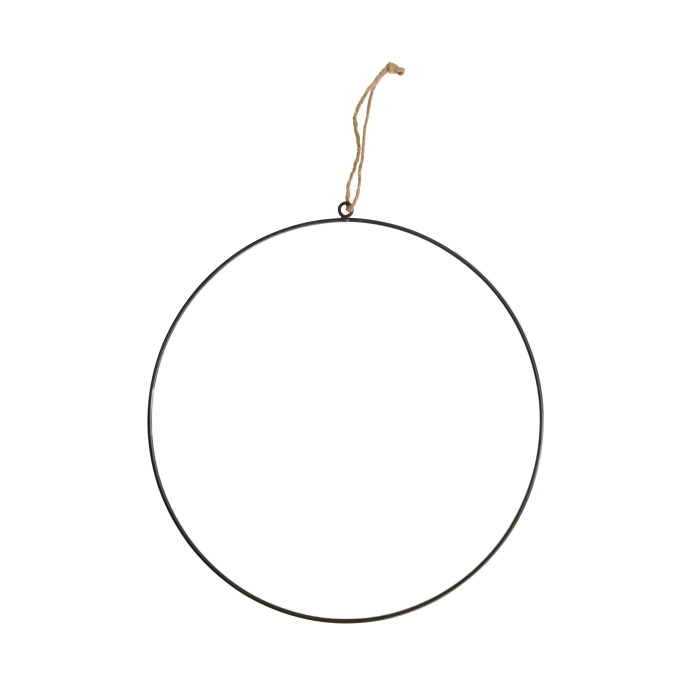 Stylový a pevný kovový kruh v černém provedení, ideální pro zavěšení a výrobu dekoračních aranžmá. S průměrem 38 cm poskytuje dostatek prostoru pro kreativní tvoření – od věnců až po závěsné květinové nebo světelné dekorace.