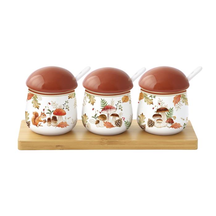 Sada prkénka se 3 porcelánovými dózami a lžičkami AUTUMN BREEZE