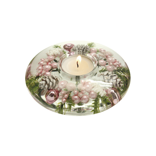 Gelový svícen s červenými doplňky na čajovou svíčku.