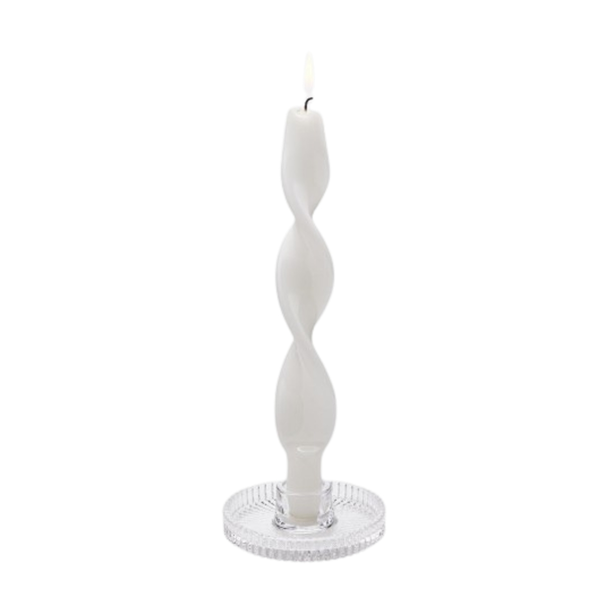 Elegantní skleněný svícen, který zaujme svým jemně rýhovaným povrchem. Díky průzračnému sklu krásně rozptyluje světlo svíčky a vytváří útulnou atmosféru v každém interiéru. Tento svícen se hodí pro kónické svíčky. Skvěle doplní svatební tabuli, vánoční dekoraci nebo romantické večery.