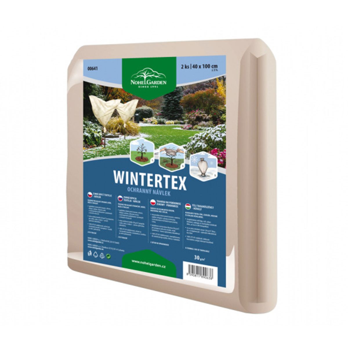 Netkaná textilie ve formě návleku. Je určená pro zakrývání mladých stromků, keřů, růží a trvalek v zimním období. Spolehlivě ochrání před mrazem, větrem těžkým sněhem, okusem zvěře a mechanickým poškozením v podzimních a zimních měsících. Fólie je extra zesílená, ale propustná pro světlo, vodu a vzduch - vytváří tak optimální mikroklima rostlině, kterou chrání. Je určená pro vícenásobné použití a je snadno manipulovatelná. UV stabilní. Gramáž: 30g/m2. Rozměry: šířka 40 cm, výška 100 cm. Počet kusů v balení: 2.