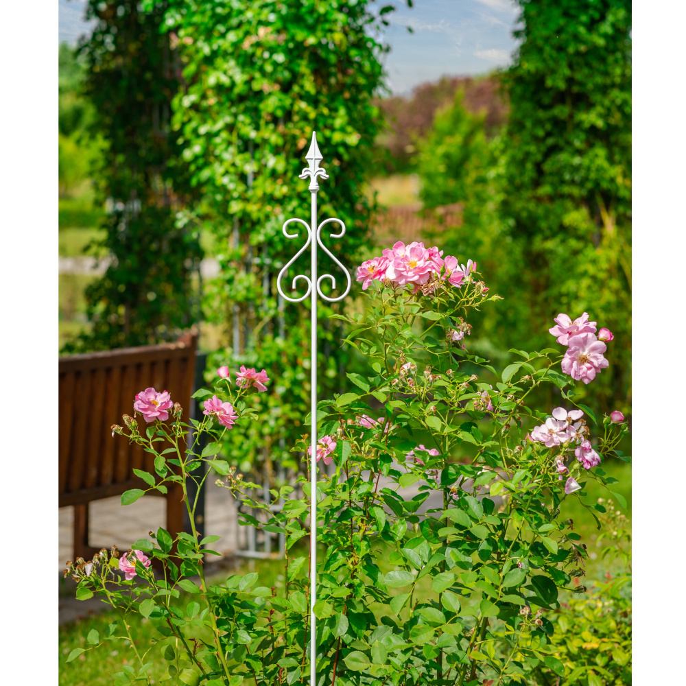 Kovový zápich do zahrady. Úprava materiálu: před lakováním povrchu probíhá tryskání ocelových broků a automatické odmaštění/fosfátování, poté lakování v práškové lakovně a následně vypalování při cca 200 °C po dobu cca 20 minut. Výsledkem je hladká, antikorozní barva a celoroční užívání na zahradě.