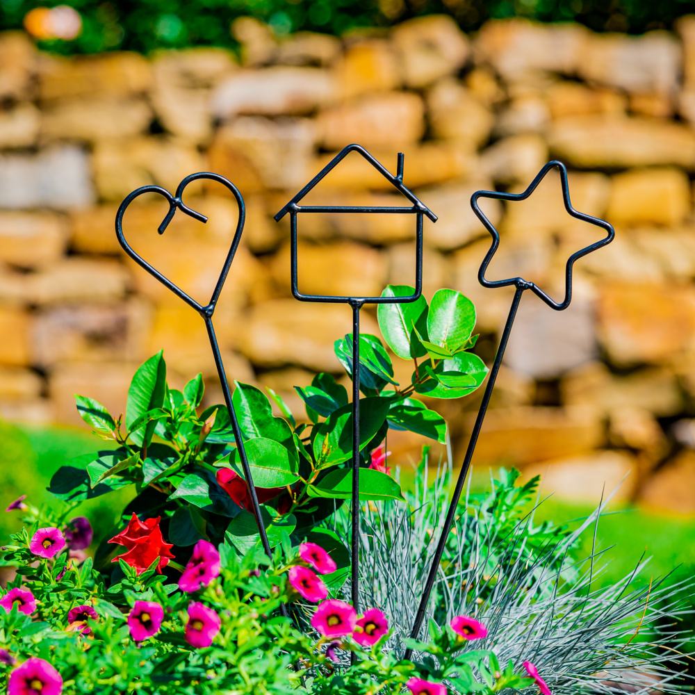 Kovový zápich do zahrady.Úprava materiálu: před lakováním povrchu probíhá tryskání ocelových broků a automatické odmaštění/fosfátování, poté lakování v práškové lakovně a následně vypalování při cca 200 °C po dobu cca 20 minut. Výsledkem je hladká, antikorozní barva a celoroční užívání na zahradě.