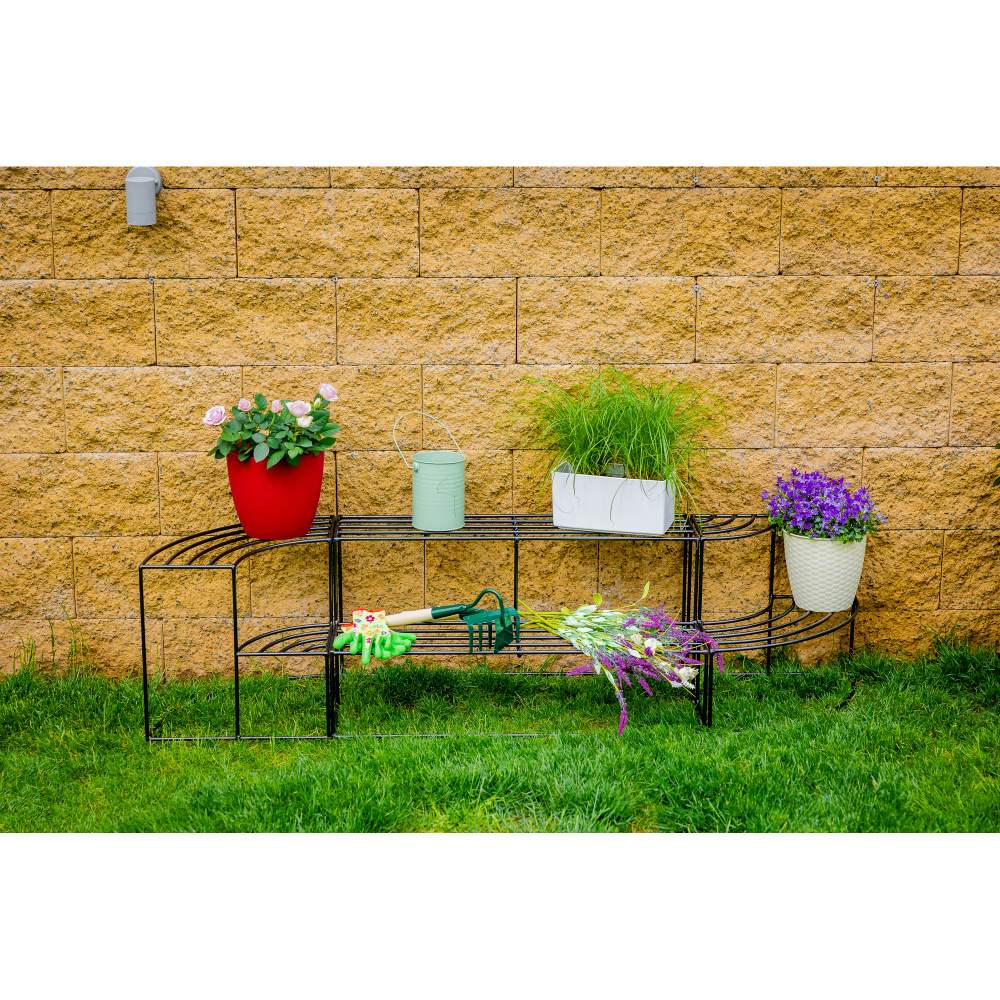 Stolek na květiny KASAI 2 patra rohový pravý kovový černý 38cm