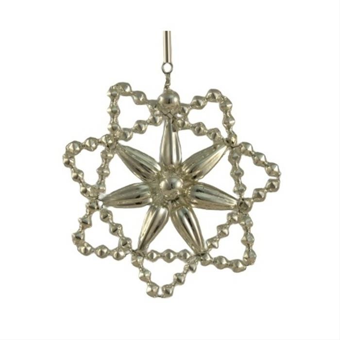 Vneste na svůj vánoční stromeček nádech luxusu a jemnosti s touto perličkovou ozdobou ve tvaru hvězdy v elegantním šampaň odstínu. Hvězdička o průměru 7 cm je ručně vyrobená z drobných perliček, které odrážejí světlo a dodávají dekoraci jemný třpyt.