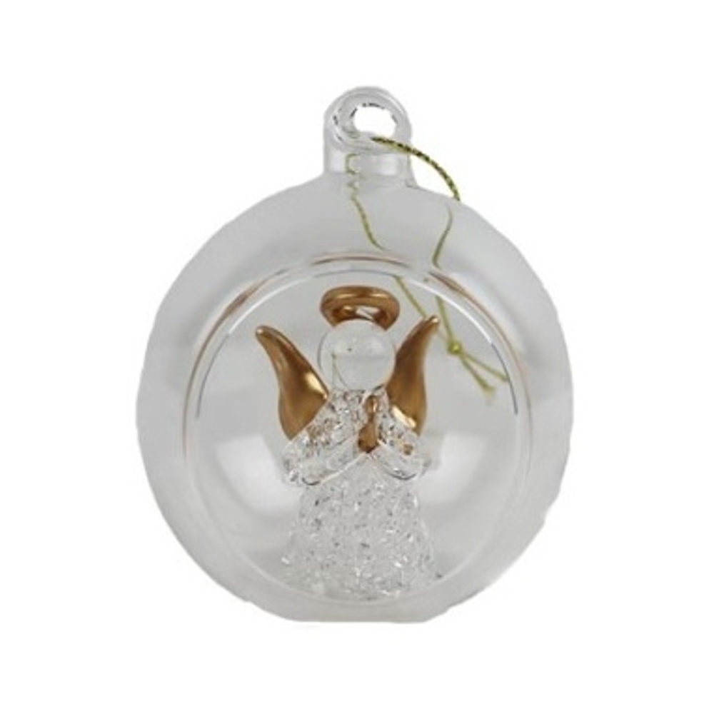 Ozdoba skleněná koule s andělem uvnitř zlato-čirá 6cm