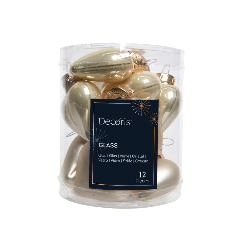 Sada skleněných ozdob srdce perleťové 4cm/12ks