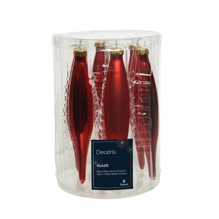 Sada skleněných vánočních ozdob pro dekoraci interiéru.