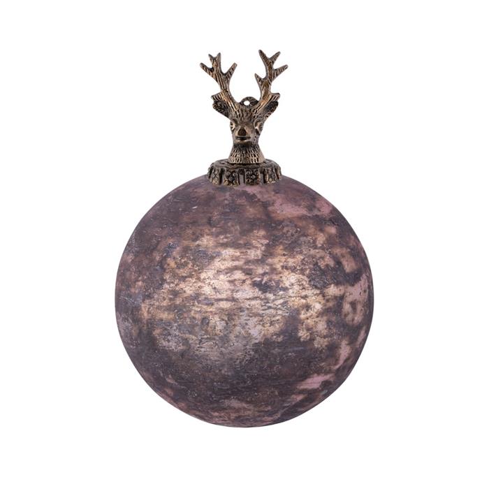 Ozdoba koule skleněná jelen antik bronzová 12cm
