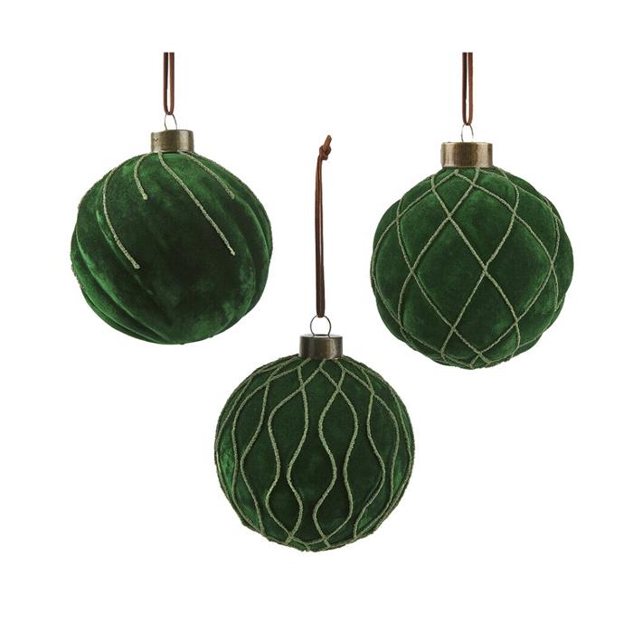 Ozdoba koule skleněná sametová zlato-zelená mix 10cm