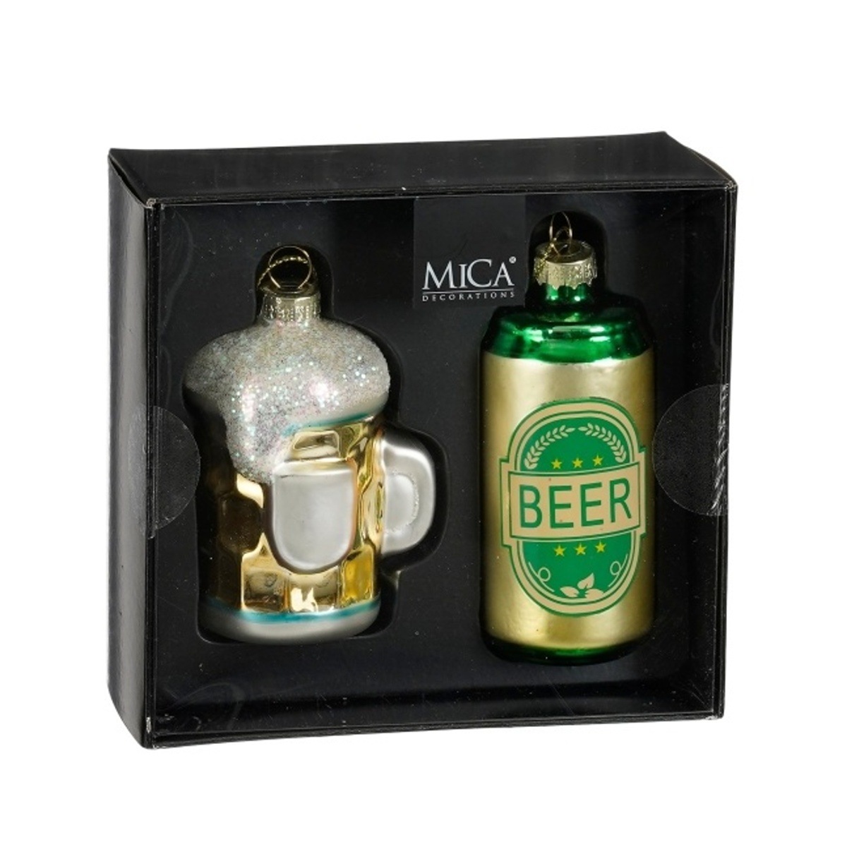 Vánoce s pěnou! Originální sada vánočních ozdob ze skla ve tvaru pivní sklenice a plechovky je perfektním dárkem pro milovníky piva nebo jako veselý doplněk na stromeček.