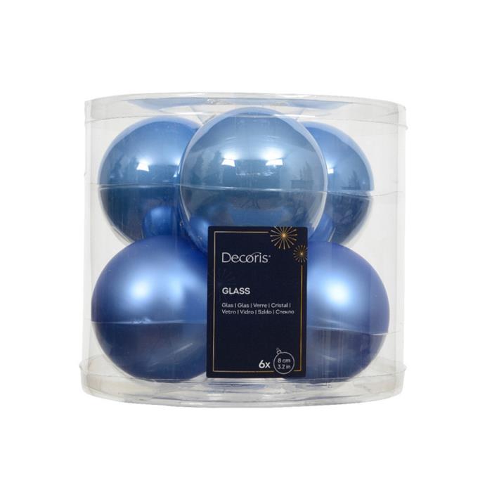 Sada skleněných ozdob sv.modná 8cm/6ks