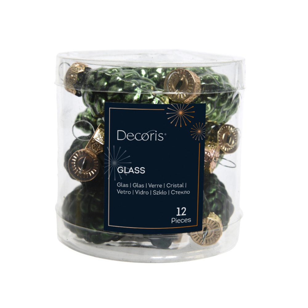 Sada skleněných ozdob šišky tm.zelené 6cm/12ks