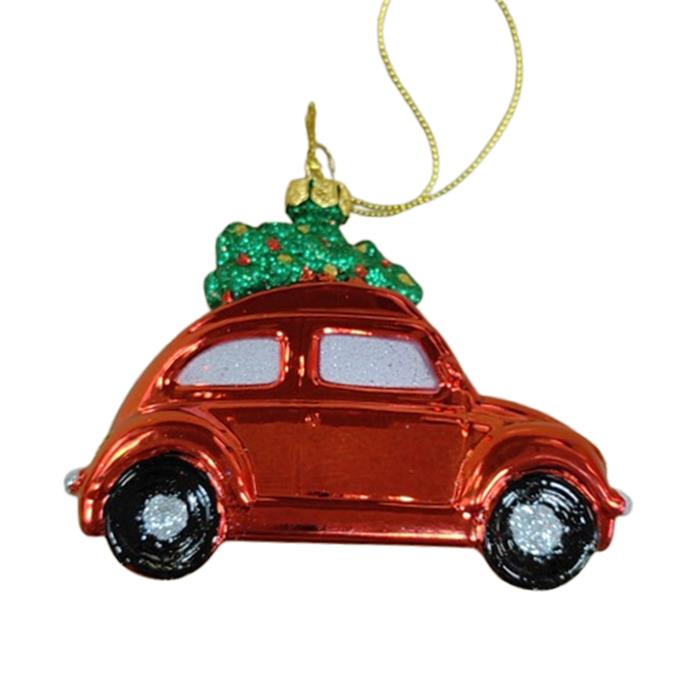 Ozdoba skleněné auto se stromkem zeleno-červená 11cm