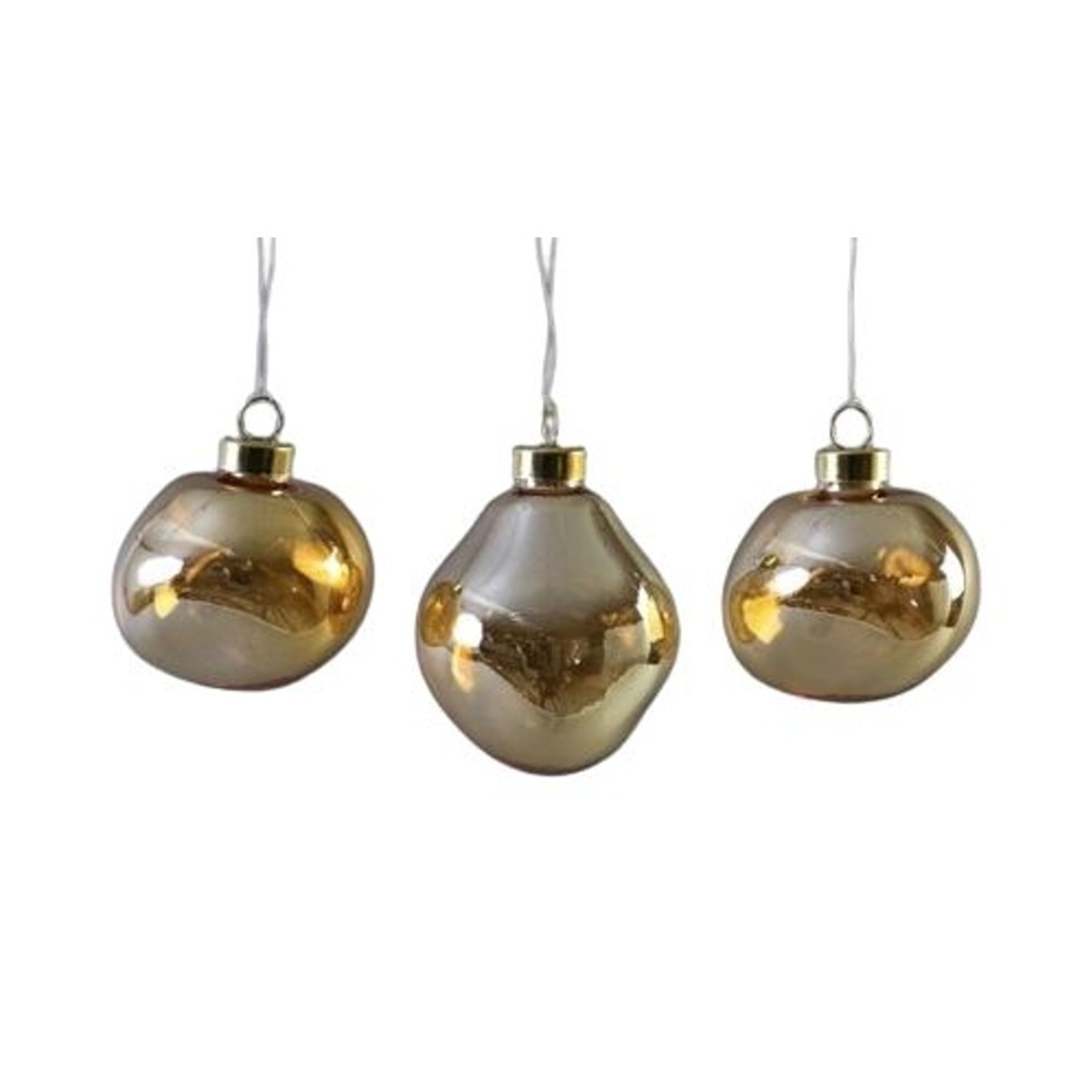 Originální a elegantní skleněná koule netradičního tvaru, která zaujme svým jedinečným designem a jemným leskem. Tato ozdoba dodá vašemu vánočnímu stromku, svátečnímu aranžmá nebo interiéru nádech originality a luxusu. Ozdoba v mixu provedení. Pokud si přejete konkrétní variantu, napište ji do poznámky, pokusíme se vyhovět. V případě nedostupnosti bude odeslán náhodný kus.