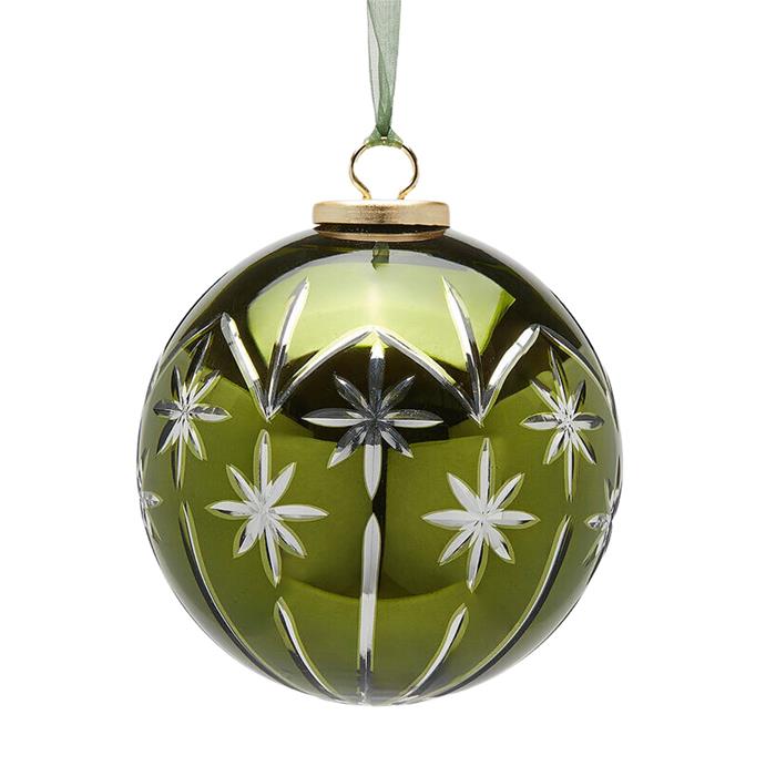 Kouzelná skleněná vánoční ozdoba ve tvaru koule, zdobená jemnými motivem hvězd. Díky svému lesklému povrchu krásně odráží světlo a dodá vašemu stromku či sváteční výzdobě elegantní a slavnostní nádech.