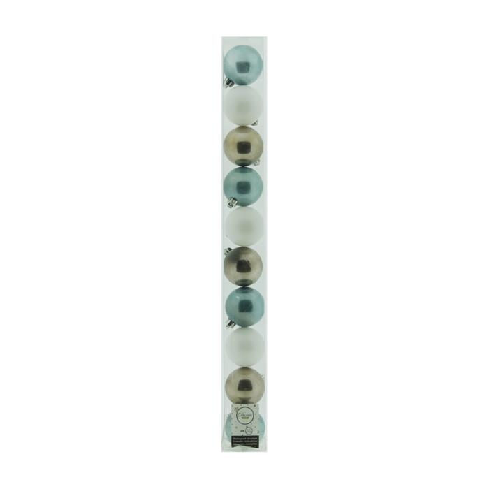 Doplňte svůj vánoční stromek elegantními ozdobami s různými povrchovými efekty. Tato sada plastových koulí o průměru 6 cm obsahuje mix lesklých, matných a glitrových ozdob, které vytvářejí bohatý a vizuálně zajímavý efekt. Skvělá volba pro klasickou i moderní vánoční výzdobu.