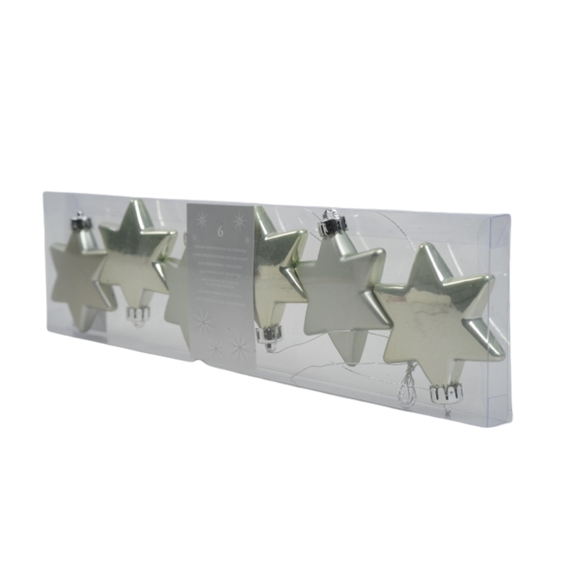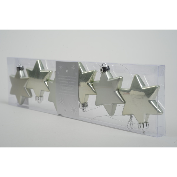 Ozdoba hvězda plastová lesklá, matná 6cm sv.zelená 6ks