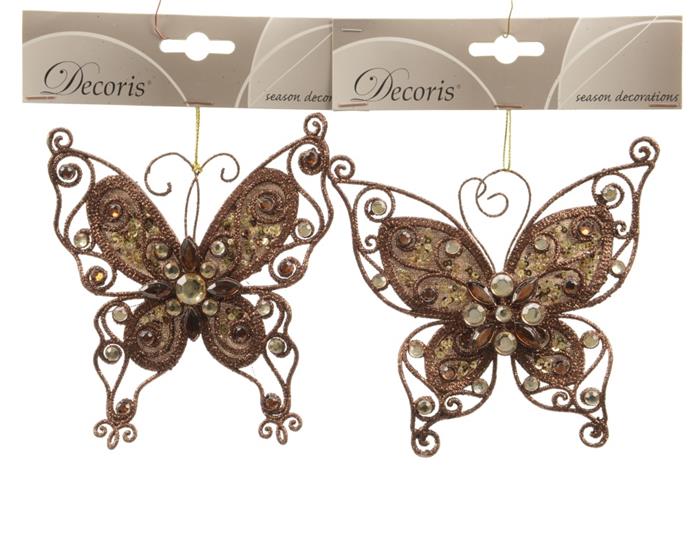 Ozdoba motýl plastový s glitry hnědý 10cm