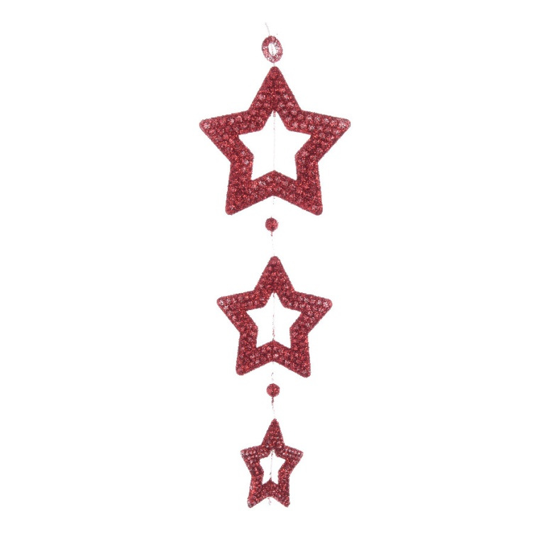 Ozdoba plastová hvězdy nebo stromy děrovaná s glitry 18cm červená