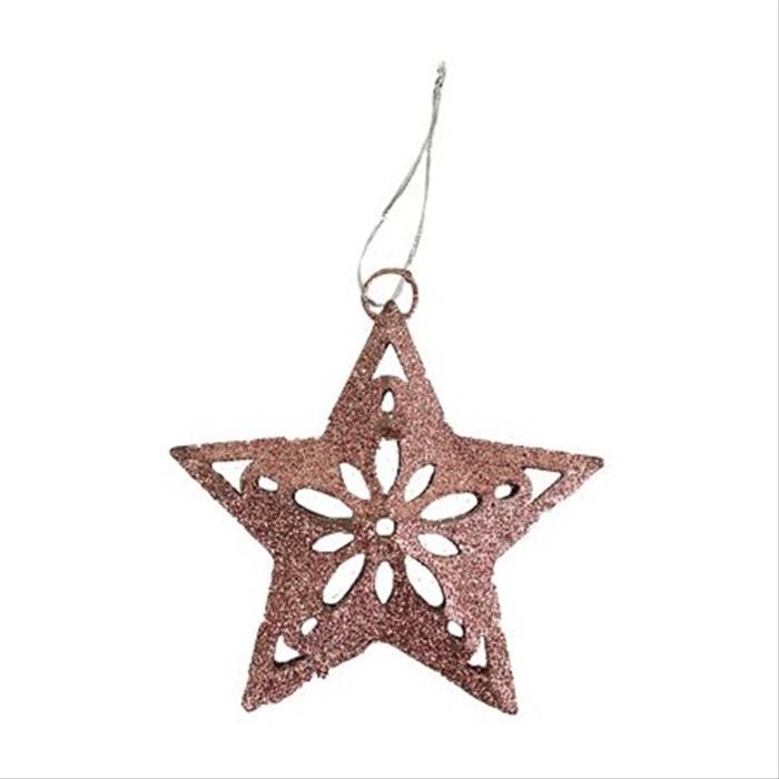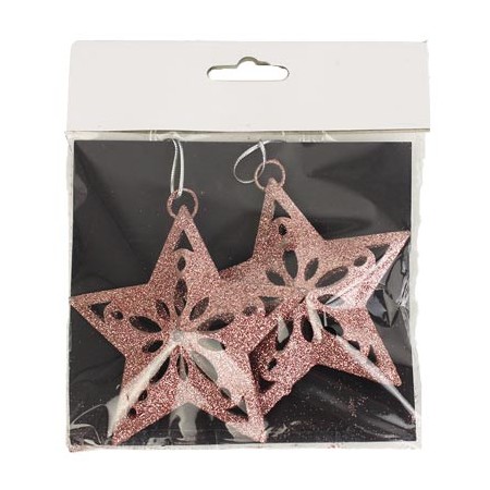 Ozdoba hvězda kovová s glitry děrovaná 10cm 2ks růžová