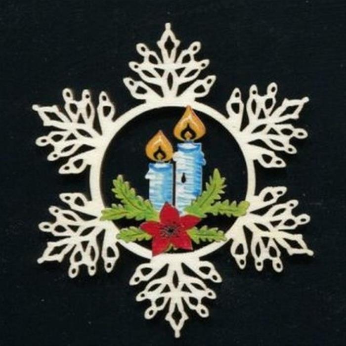 Ozdoba vločka se svíčkami dřevěná 9cm