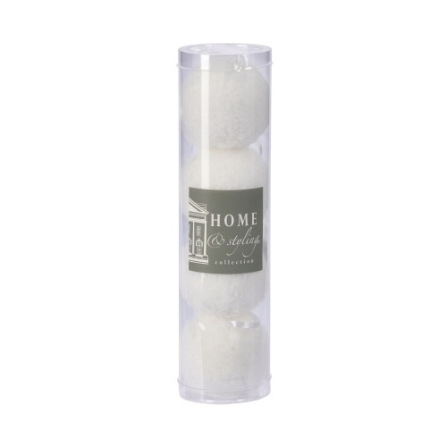 Sada pěti bílých pěnových koulí s hebkým plyšovým povrchem v průměru 6 cm vnese do vašeho domova jemnost a eleganci. Tyto lehké ozdoby jsou ideální na vánoční stromeček, do věnců, misek nebo dalších aranžmá. Skvěle se hodí pro přírodní i minimalistickou výzdobu.