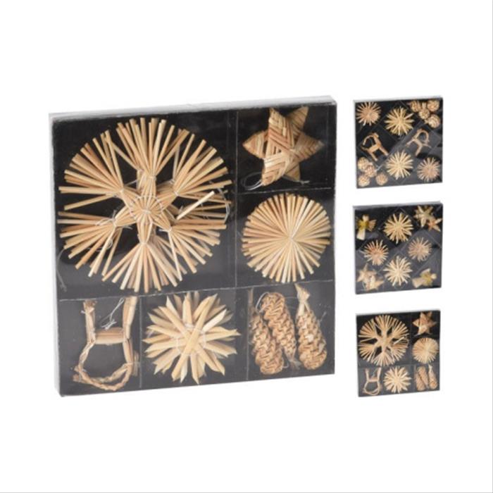 Sada slaměných ozdob v mixu provedení. Pokud si přejete konkrétní variantu, napište ji do poznámky, pokusíme se vyhovět. V případě nedostupnosti bude odeslán náhodný kus.