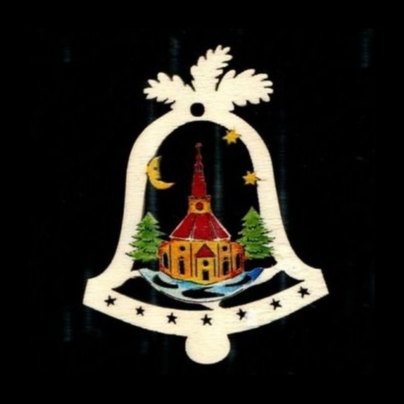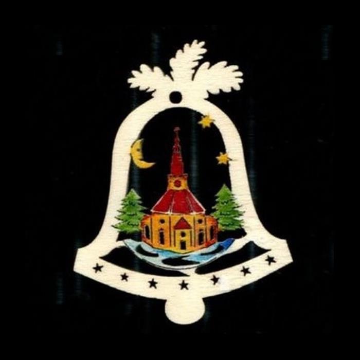 Ozdoba zvonek s kostelem dřevěná 6cm