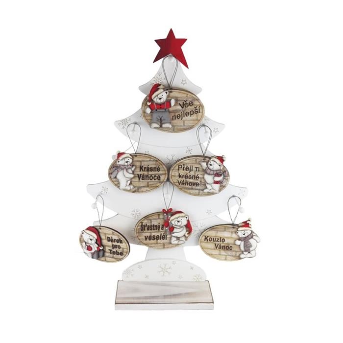 Ozdoba medvěd s nápisem dřevěný bílo-přírodní mix