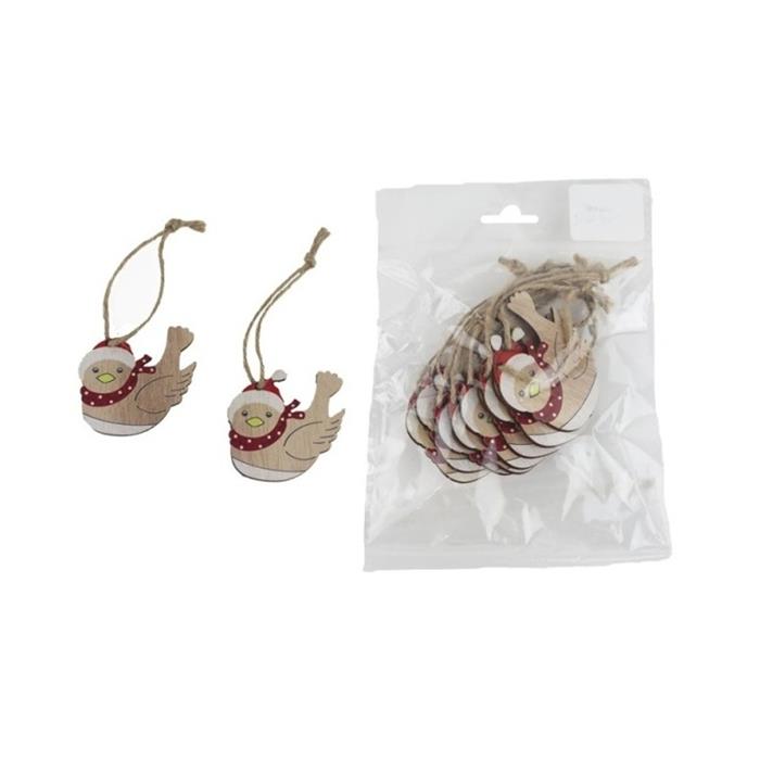 Roztomilé a zimně laděné dřevěné ozdoby ve tvaru ptáčků, kteří mají na sobě čepici a šálu. Sada 20 kusů je ideální pro vytvoření jednotné a hravé vánoční dekorace v přírodním nebo rustikálním stylu.