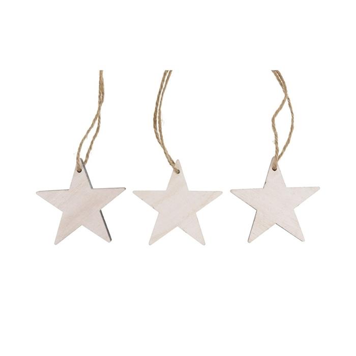 Ozdoba dřevěná hvězda bílo-přírodní 10cm
