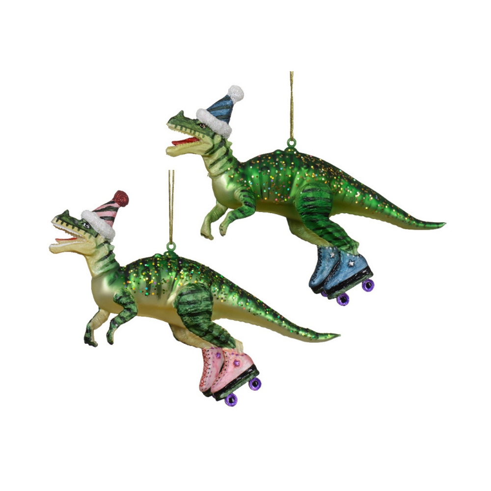 Vneste do své vánoční výzdoby zábavu a originalitu s touto jedinečnou skleněnou ozdobou ve tvaru dinosaura na kolečkových bruslích. Veselý a hravý motiv v zeleném provedení dodá vašemu stromku nebo zimní dekoraci nečekaný šmrnc. Ozdoba v mixu provedení. Pokud si přejete konkrétní variantu, napište ji do poznámky, pokusíme se vyhovět. V případě nedostupnosti bude odeslán náhodný kus.