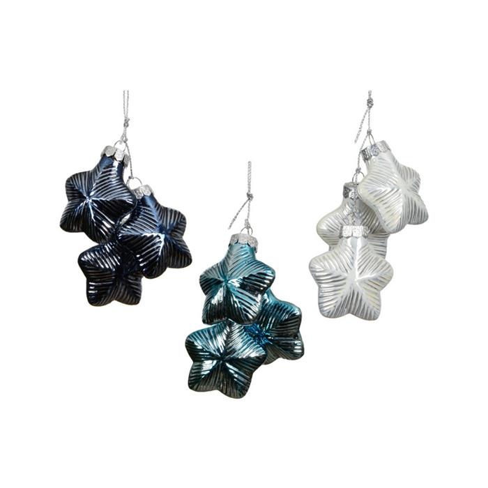 Ozdoba skleněná hvězdá bílá/modrá mix 3ks