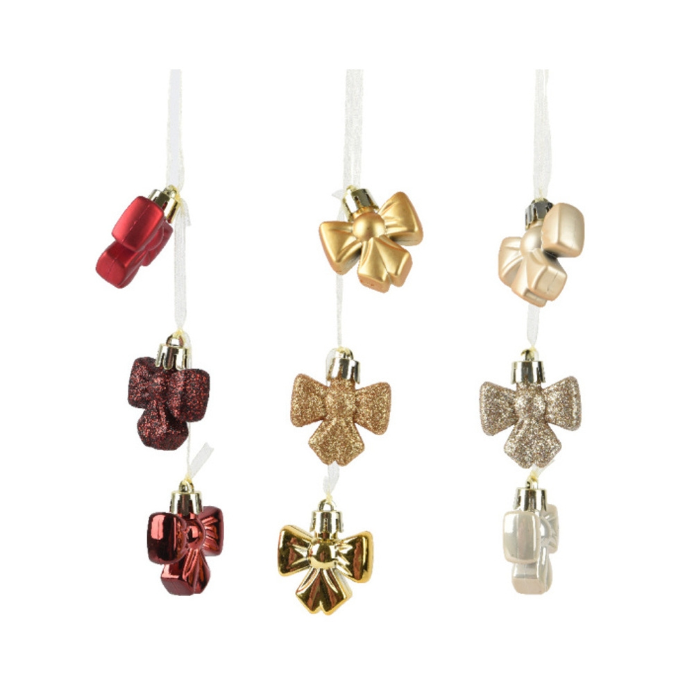 Doplňte svou sváteční výzdobu elegantními plastovými mašlemi ve třech různých provedeních – lesklém, matném a třpytivém. Tento decentní, ale efektní doplněk dodá vašemu vánočnímu stromku či aranžmá jemnost, eleganci i slavnostní třpyt. Ozdoba v mixu provedení. Pokud si přejete konkrétní variantu, napište ji do poznámky, pokusíme se vyhovět. V případě nedostupnosti bude odeslán náhodný kus.