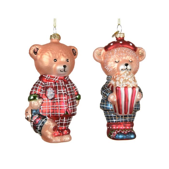 Ozdoba skleněný medvěd s hračkou/popcornem mix 13cm