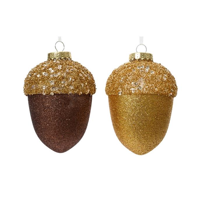Stylová vánoční ozdoba ve tvaru žaludu, zdobená třpytivými glitry. Lehký plastový materiál zaručuje snadnou manipulaci a odolnost, což z ní dělá perfektní doplněk k podzimním i zimním dekoracím. Ozdoba v mixu provedení. Pokud si přejete konkrétní variantu, napište ji do poznámky, pokusíme se vyhovět. V případě nedostupnosti bude odeslán náhodný kus.