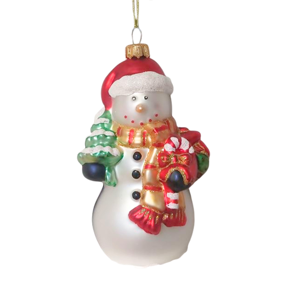 Kouzelná skleněná ozdoba ve tvaru sněhuláka se stromečkem přinese na váš vánoční stromek zimní pohádkovou atmosféru. Jemně zpracované detaily a barevné akcenty dodávají dekoraci veselý vzhled, který potěší děti i dospělé.