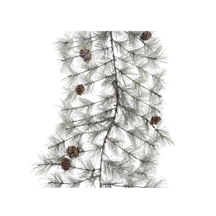 "Vytvořte si doma pravou zimní atmosféru s touto realistickou zasněženou girlandou z umělé borovice. Díky jemnému ""zasněžení"" působí přirozeně a elegantně – ideální pro sváteční výzdobu i zimní aranžmá."