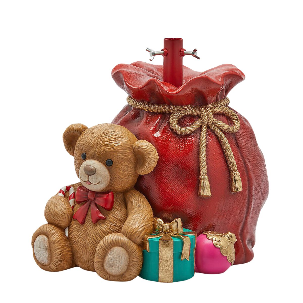 Stojánek na vánoční stromek pytel s dárky a medvědem polyresinový 44cm