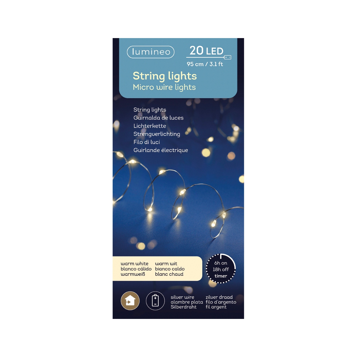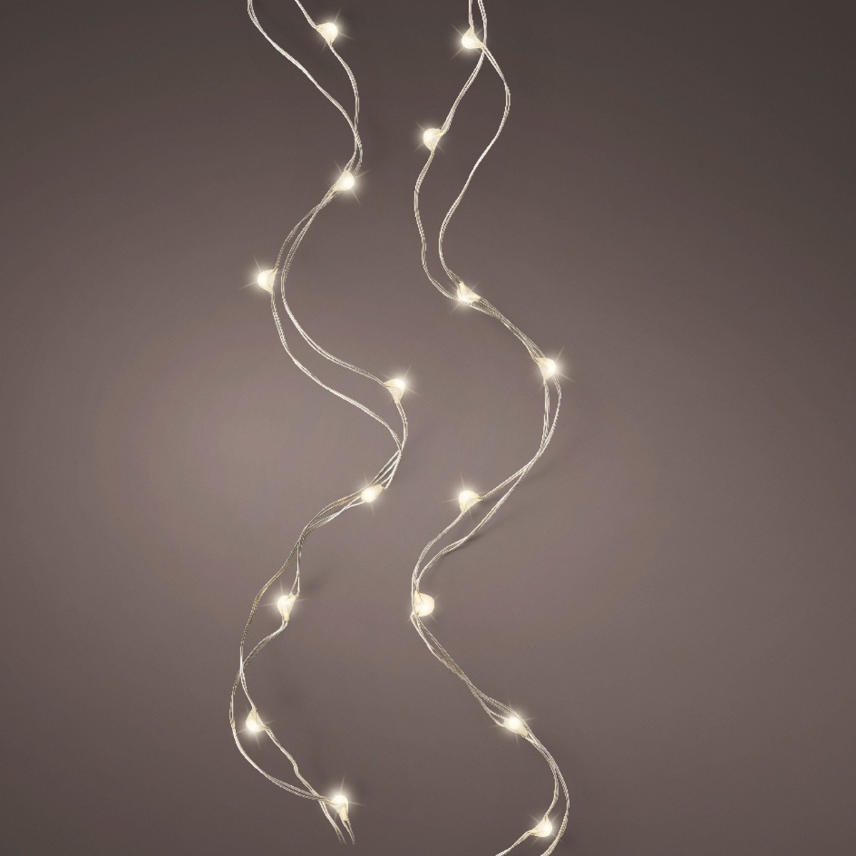 Elegantní a jemný světelný řetěz s 20 microLED diodami v teplé bílé barvě, který dodá vašemu prostoru moderní a slavnostní vzhled. Díky stříbrnému drátku působí nenápadně a decentně i přes den.