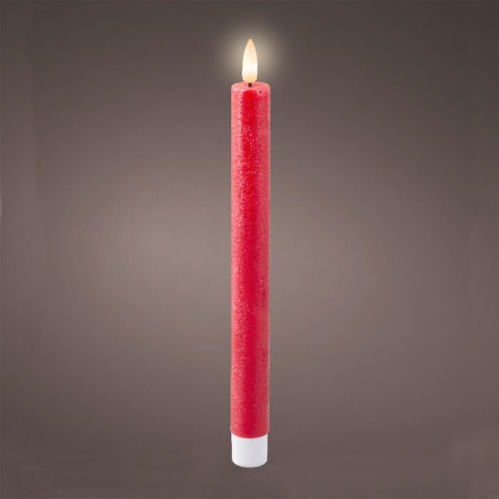 Elegantní červené kónické svíčky se zabudovanou teple bílou LED diodou přinášejí kouzlo klasického světla bez nebezpečí plamene. Ideální volba pro vánoční svícny, sváteční tabuli nebo celoroční dekoraci.
