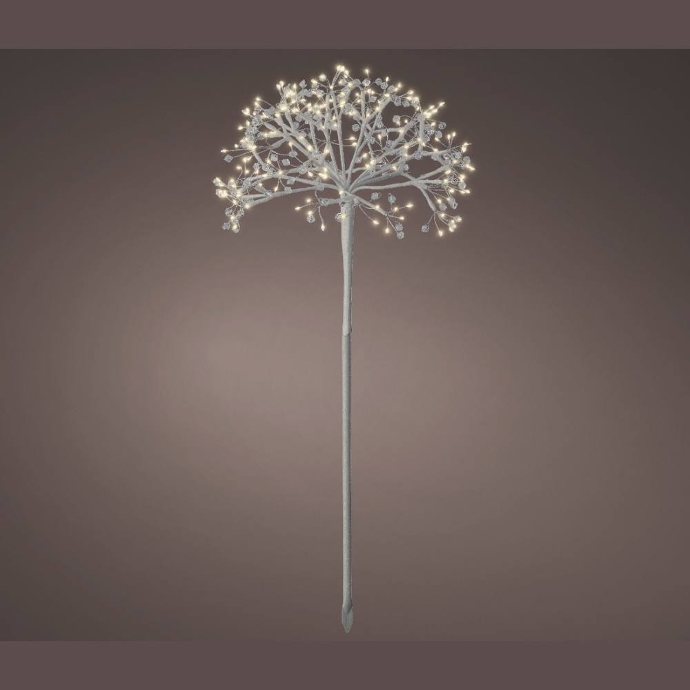 Popis produktu Květ zápich kovový se 192microLED, t.bílá s časovačem na baterie, bílá 75cm