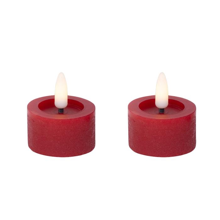 Svíčka čajová červená 1LED t.bílá s časovačem na baterie 2ks